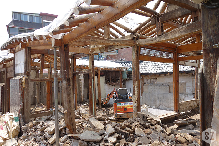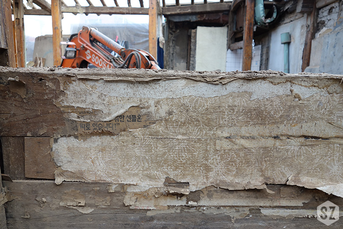 ▲걷어낸 벽 밖으로 이웃집의 벽들이 보이기 시작합니다.